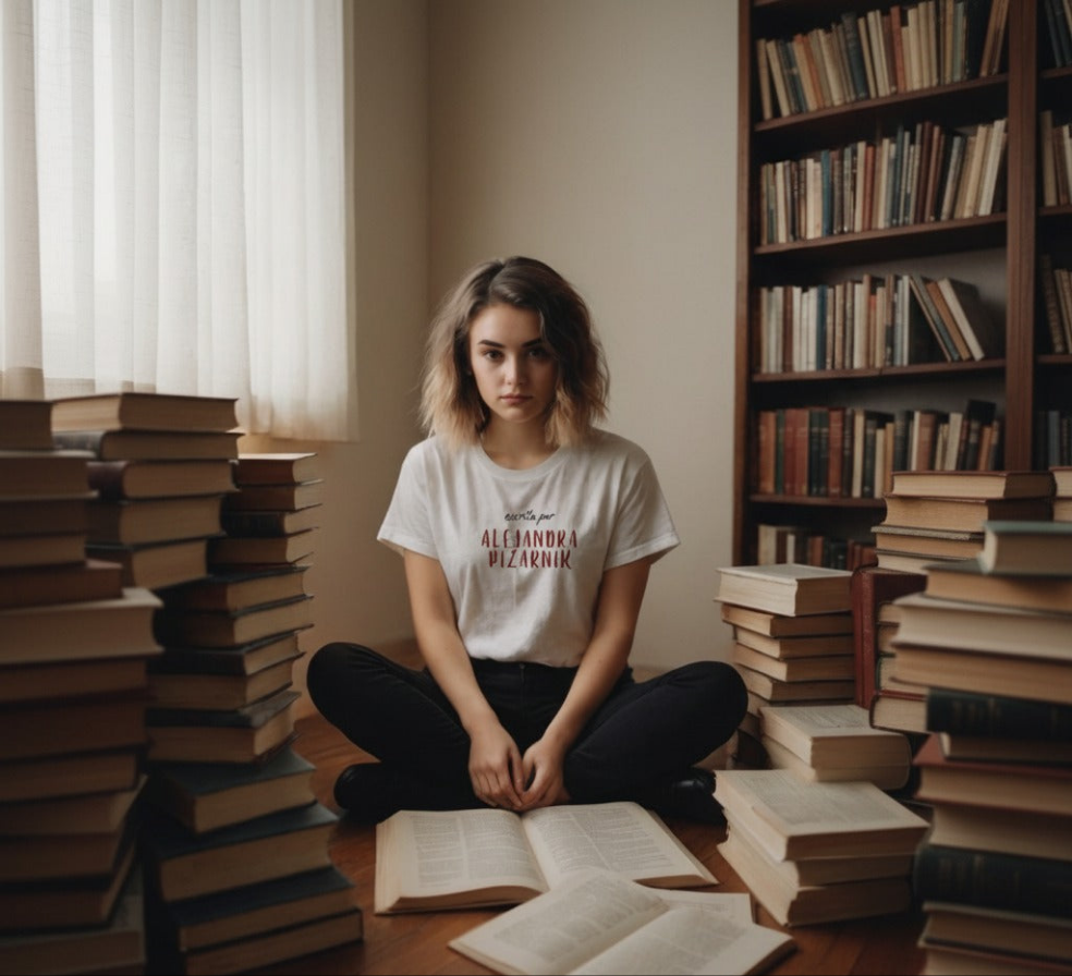 Esta camiseta es un guiño directo a la obra de Alejandra Pizarnik, poeta intensa, luminosa y oscura a la vez, que marcó un antes y un después en la literatura latinoamericana.